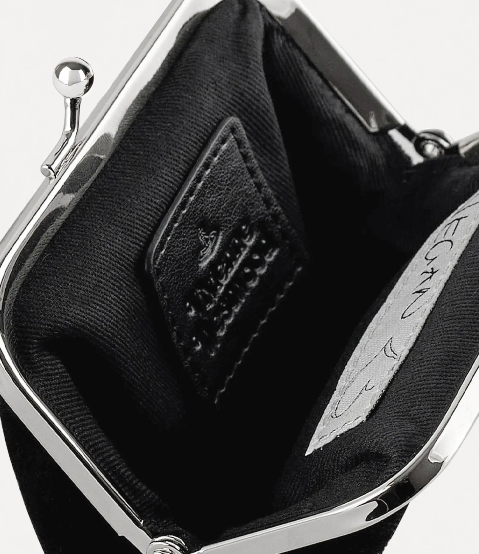 Our Frame Coin purse features a vintage-inspired silhouette, complete with a kiss-lock closure, reminiscent of early 20th-century antique coin purses. The piece adopts a soft cotton velvet finish, paying homage to the opulent furniture of the early 19th century, a key influence for this season’s collection.