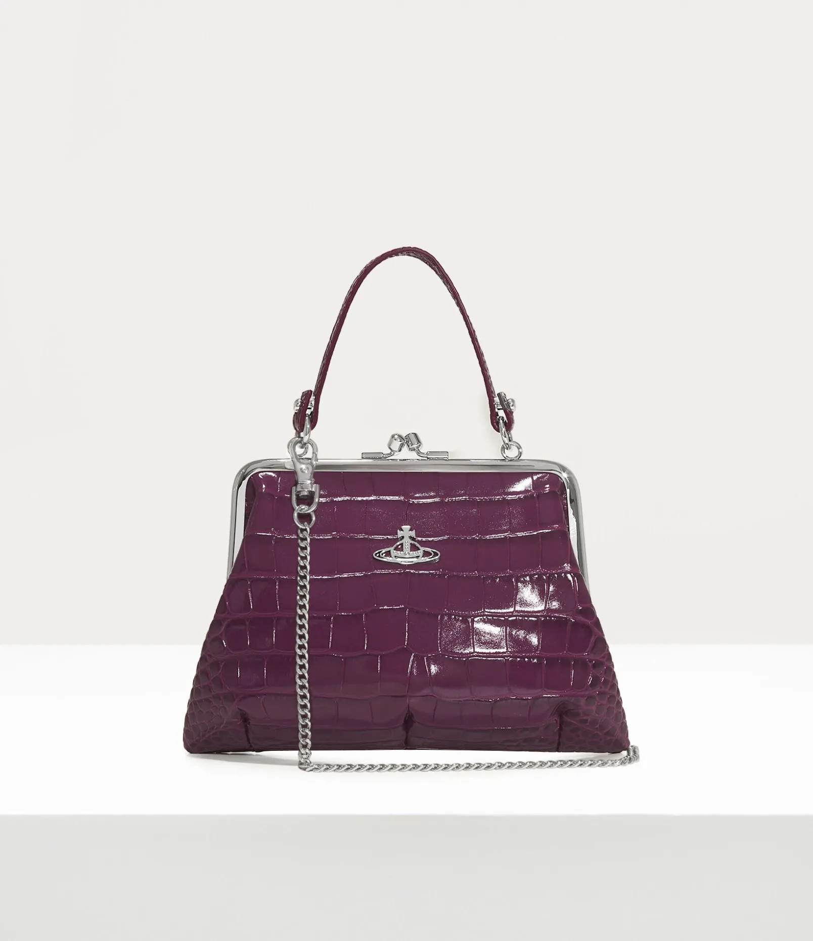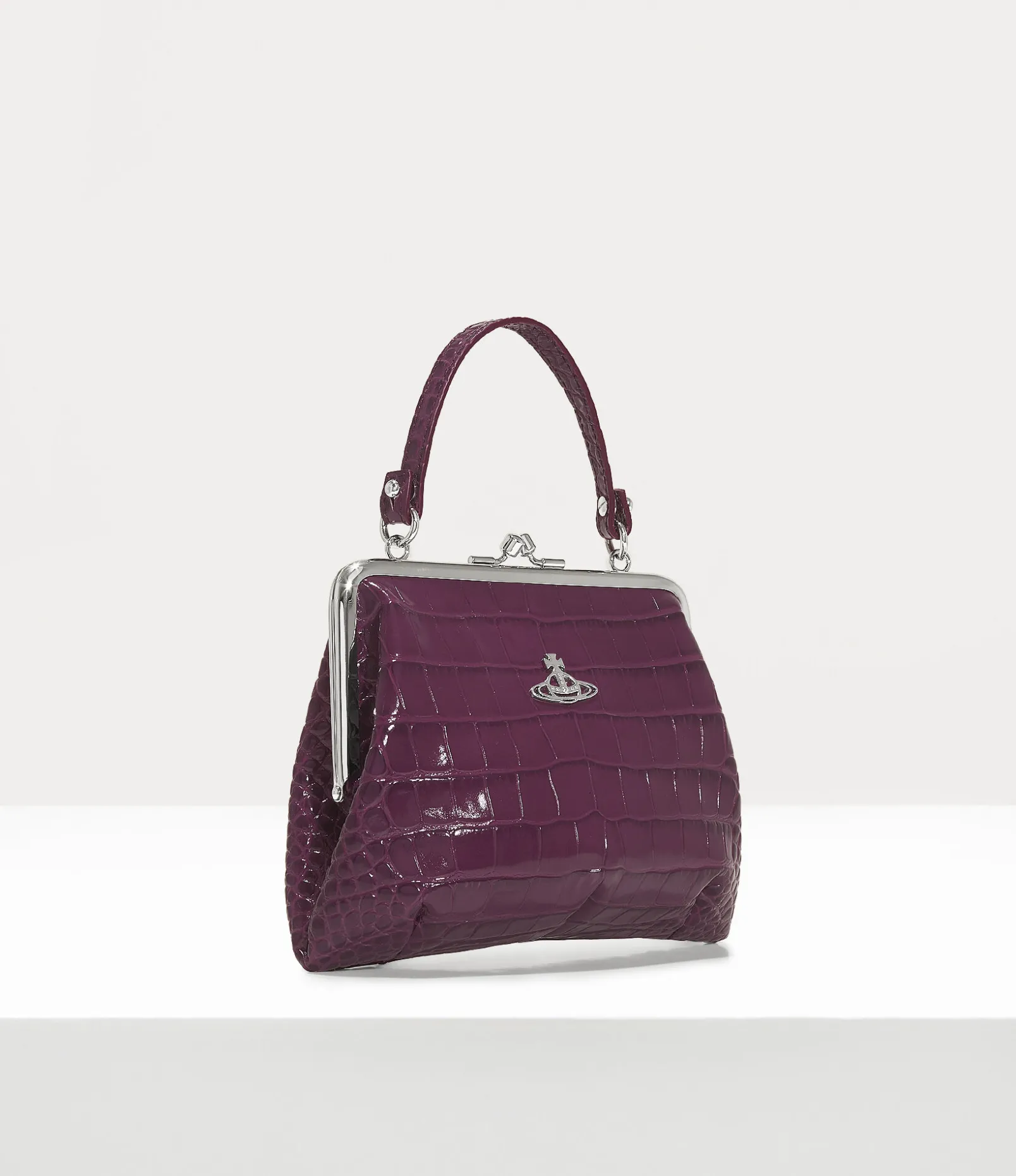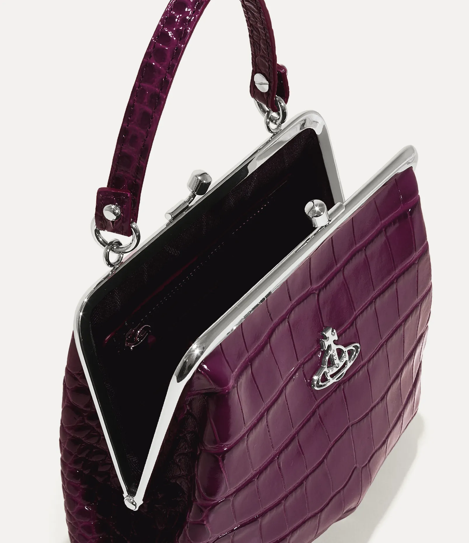 Our Granny Frame purse features a vintage-inspired silhouette and a kiss-lock closure, recalling antique coin purses from the early 20th century. The piece receives a croc-embossed finish, complete with our classic line orb motif – synonymous with Vivienne’s vision for taking tradition into the future.