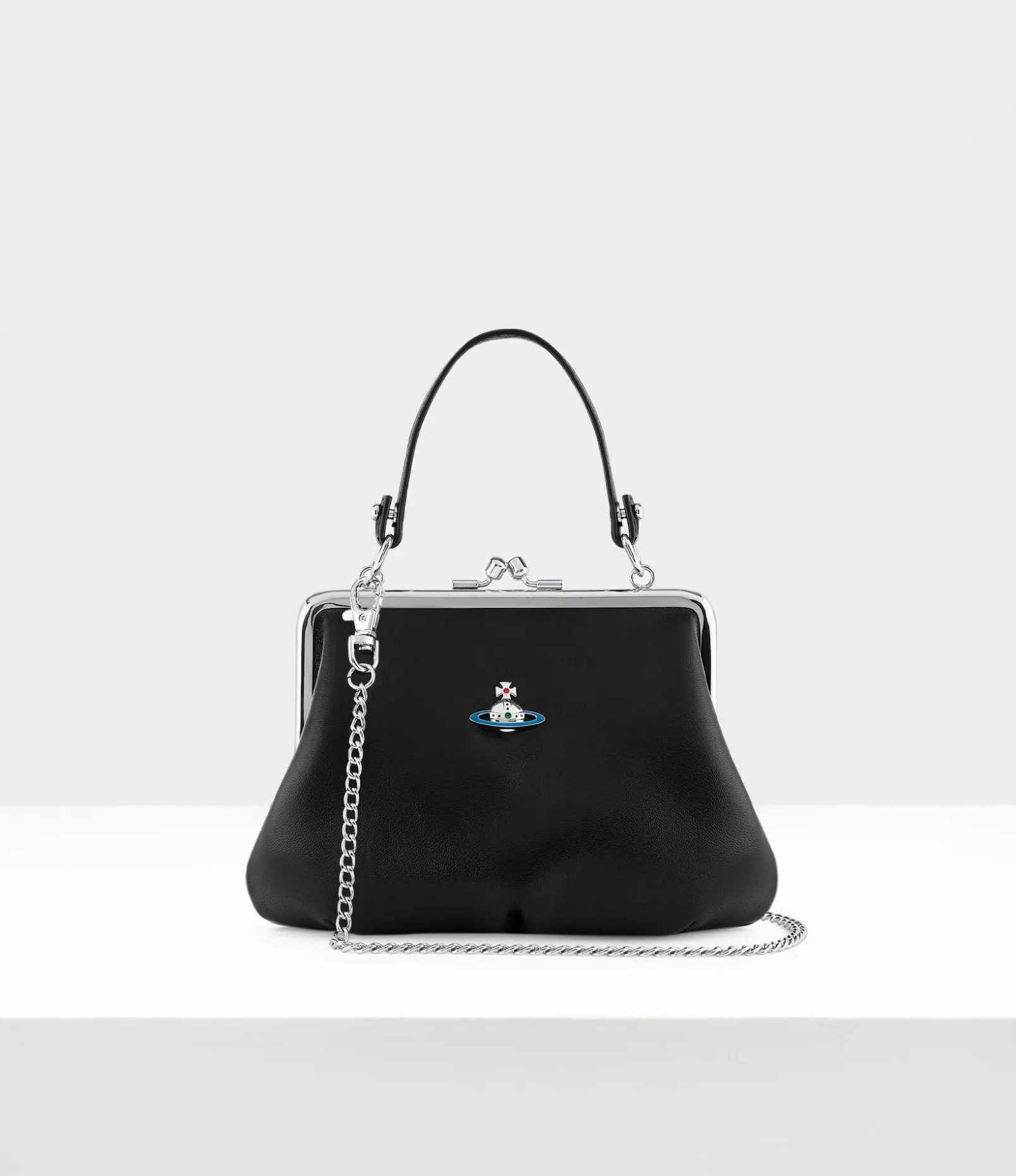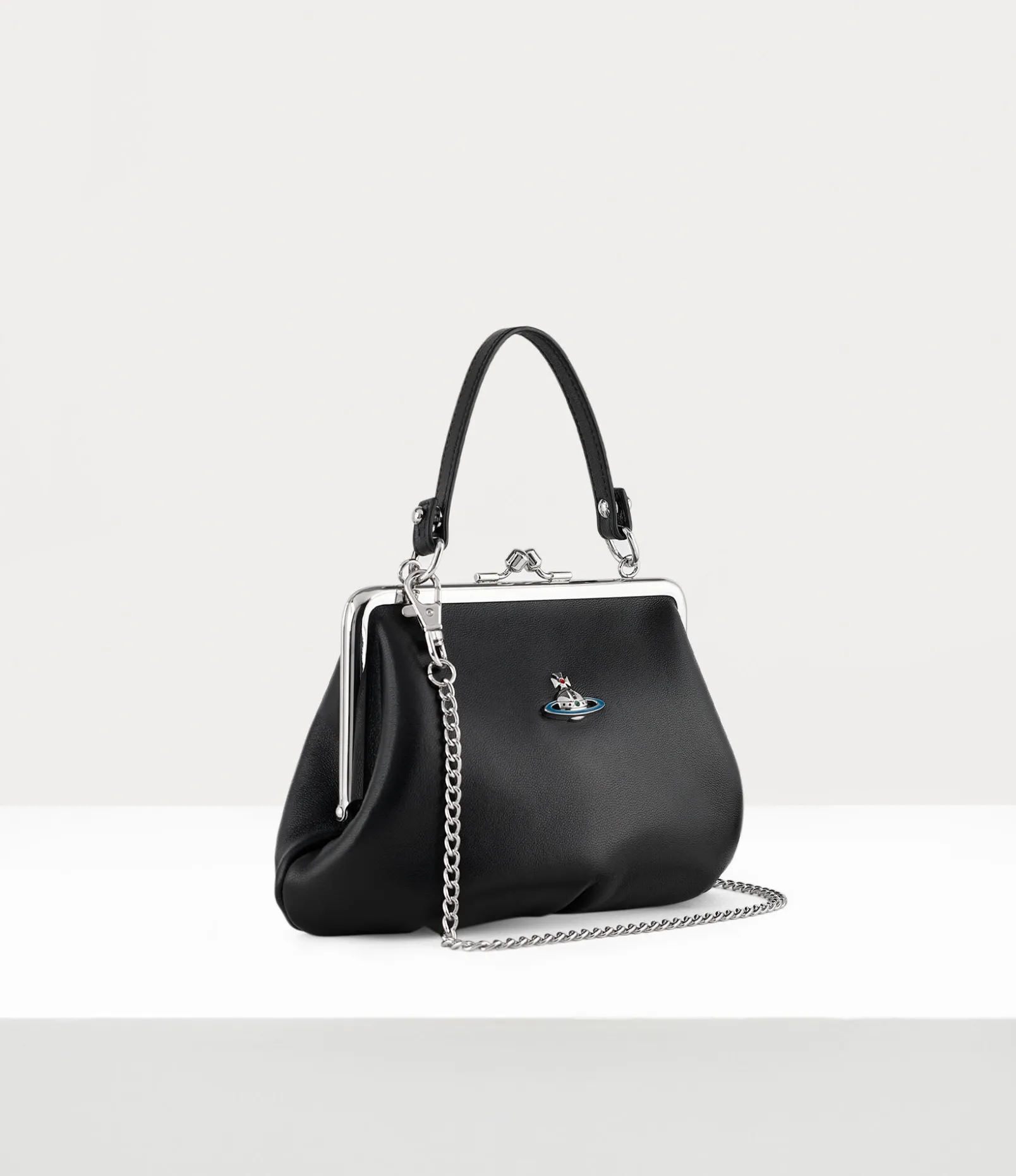 Made from soft leather, our Granny Frame purse features a metal framework, a zipped interior pocket and a removable chain strap.