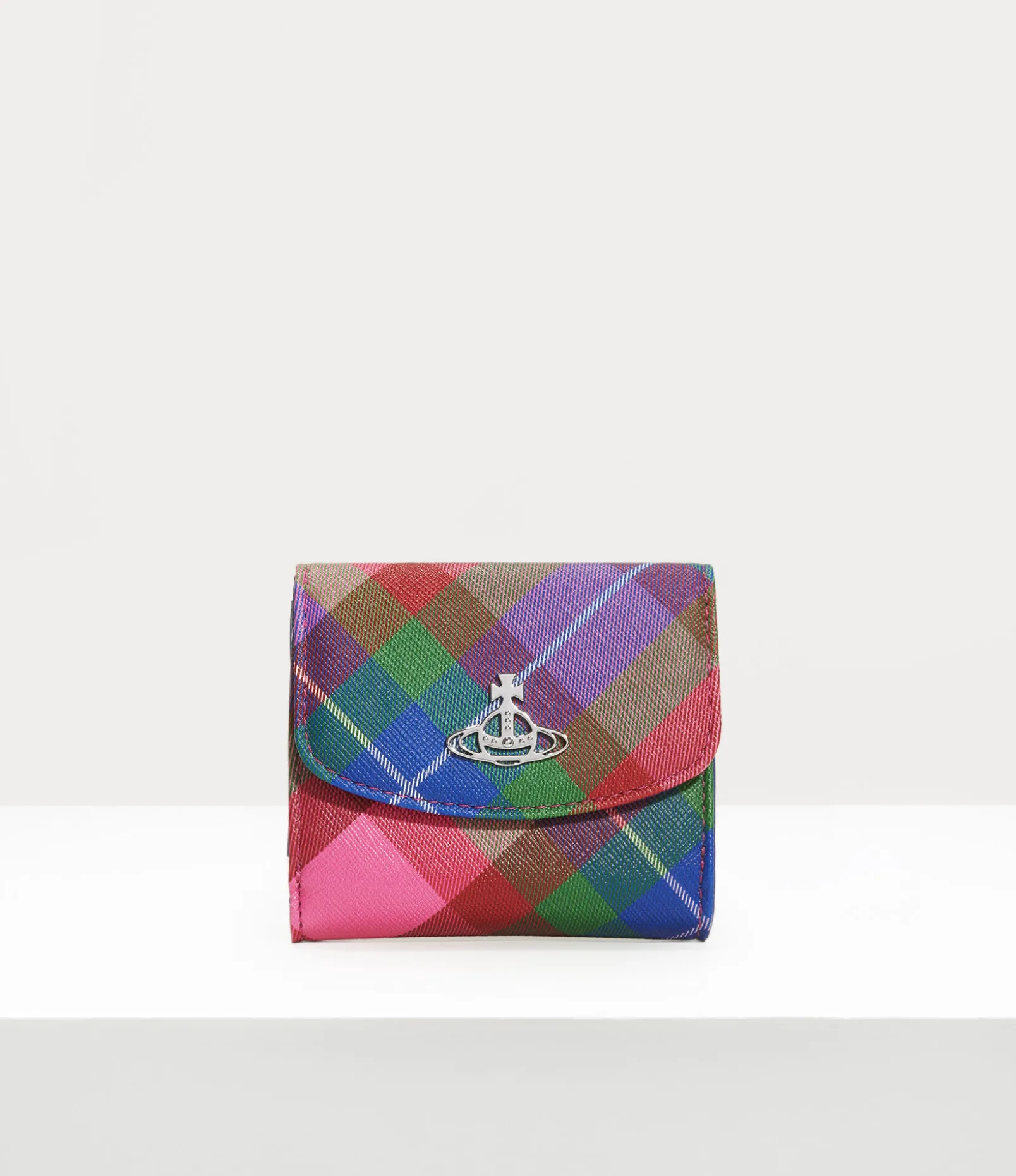 Our signature ‘line orb’ motif is synonymous with Vivienne’s vision of launching tradition into the future. The silhouette of our Small wallet revives the motif, along with this season’s ‘candy tartan’ pattern, which has been reimagined with playful, candy-toned hues.