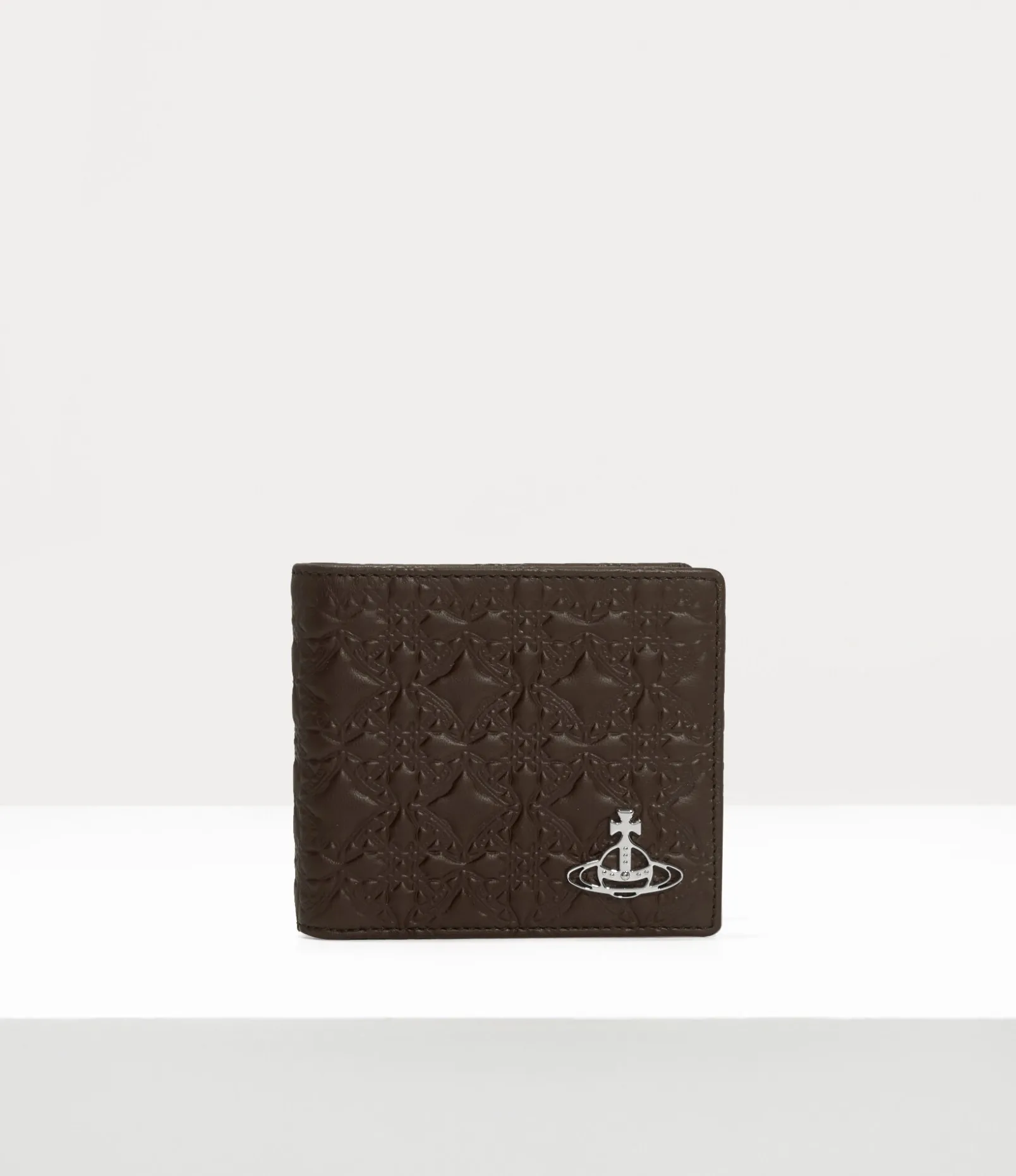 Our Man. Billfold wallet features an orb-embossed texture, complete with the signature Vivienne Westwood embossing on the inner panel. The design takes inspiration from our orb emblem, which integrates the Saturn ring to symbolise Vivienne’s vision of launching tradition into the future.