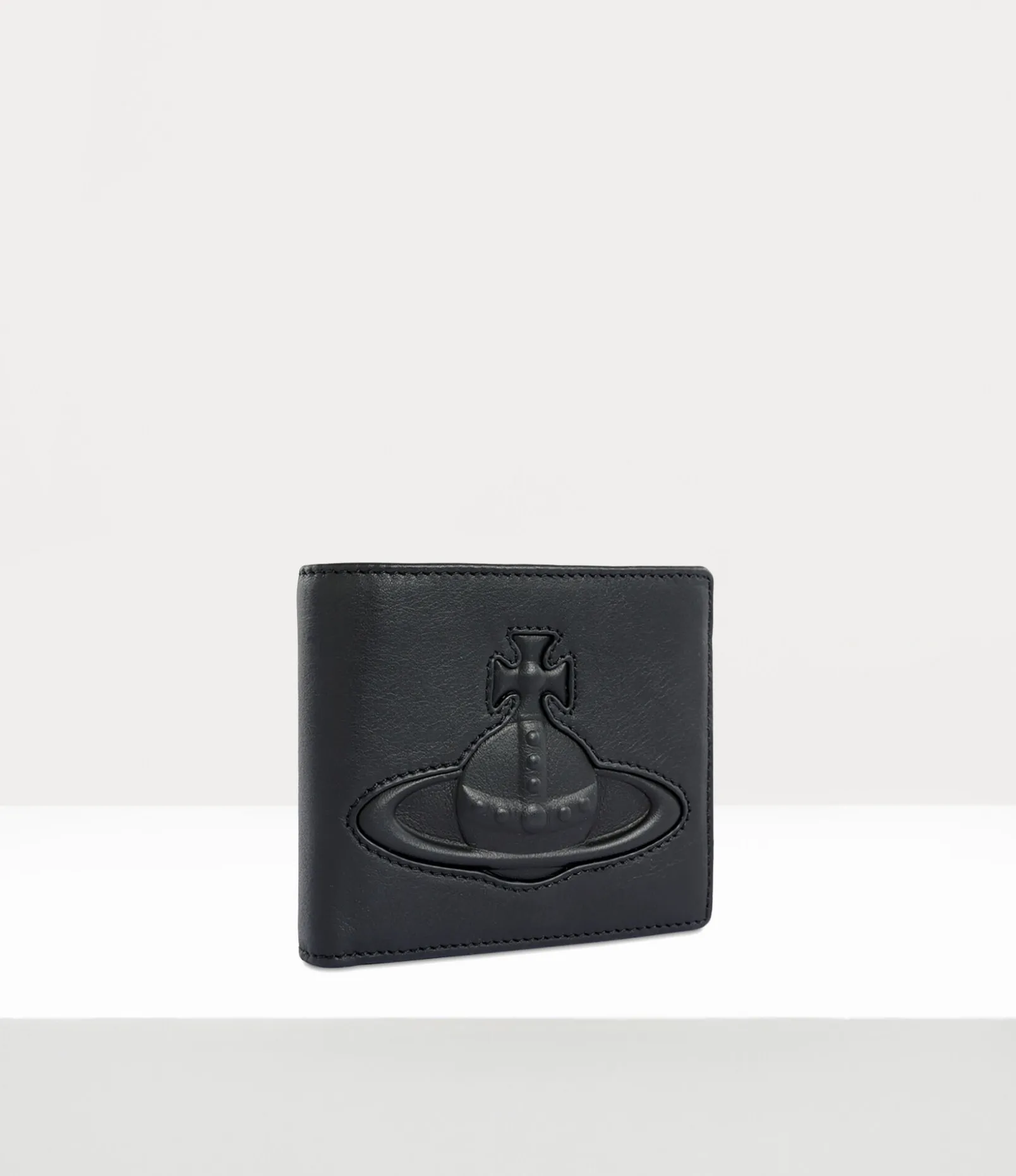 Our Man Billfold wallet in leather showcases a smooth surface with the phrase ‘Vivienne Westwood’ inscribed on the interior panel. The piece receives a three-dimensional injected orb motif on the front panel – recalling Vivienne’s vision of launching tradition into the future.