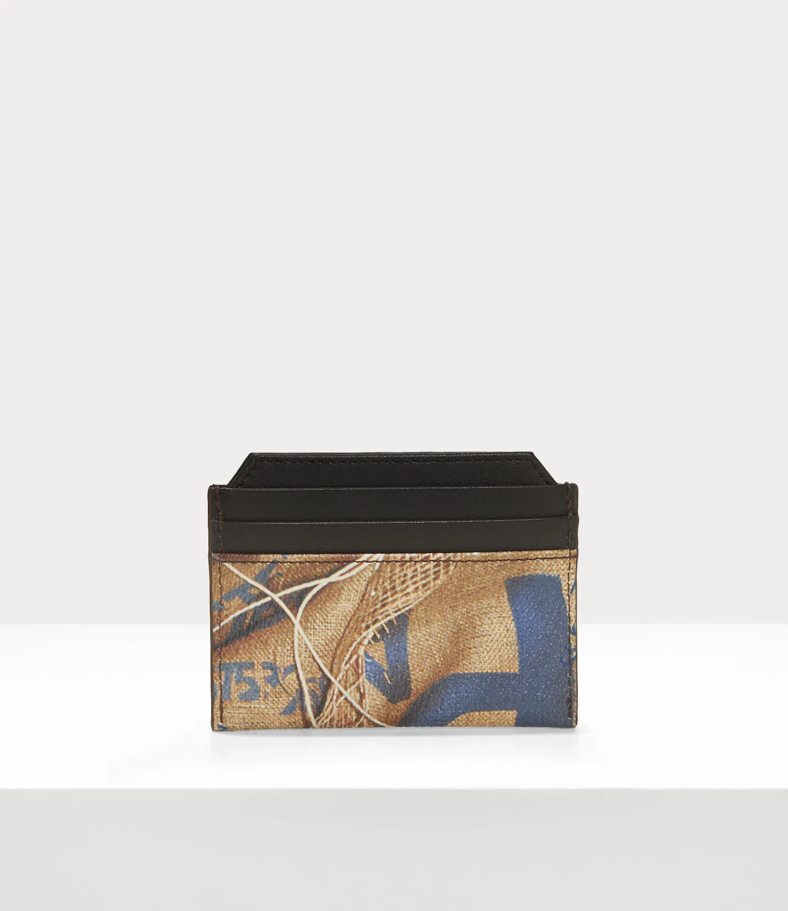 Our Slim card holder features a PU leather silhouette with a minimal design, complete with a smooth finish. The piece receives our archive ‘Rubbish’ motif, a collage of packaging and cardboard images – evoking the concept of upcycling newspapers by using them to wrap valuable ornaments when moving house.