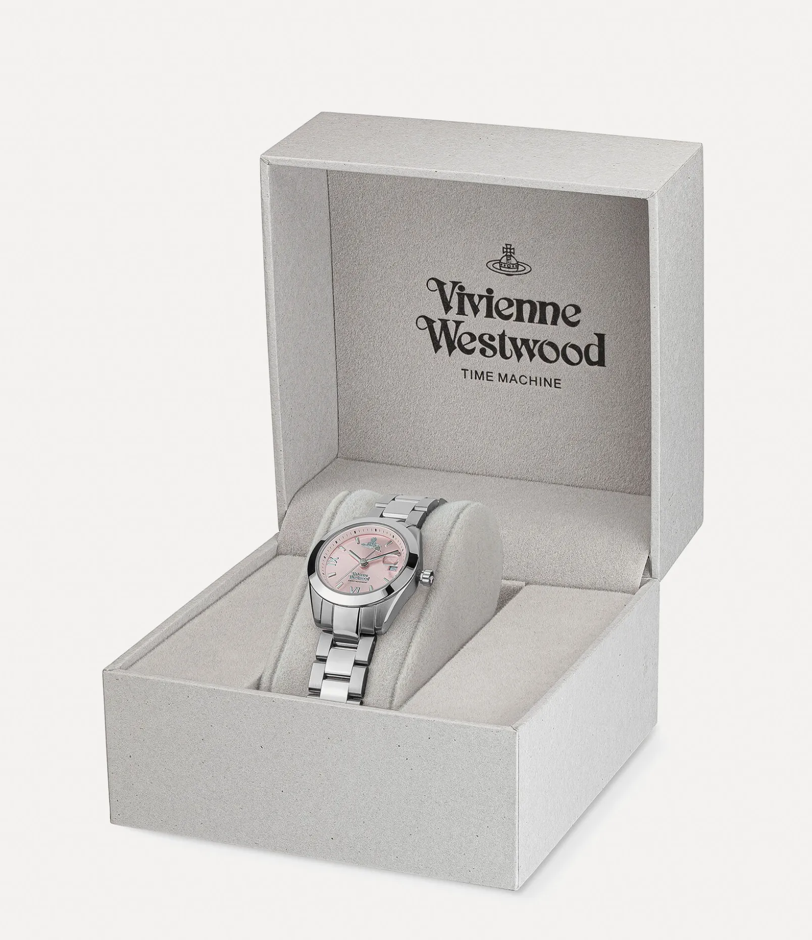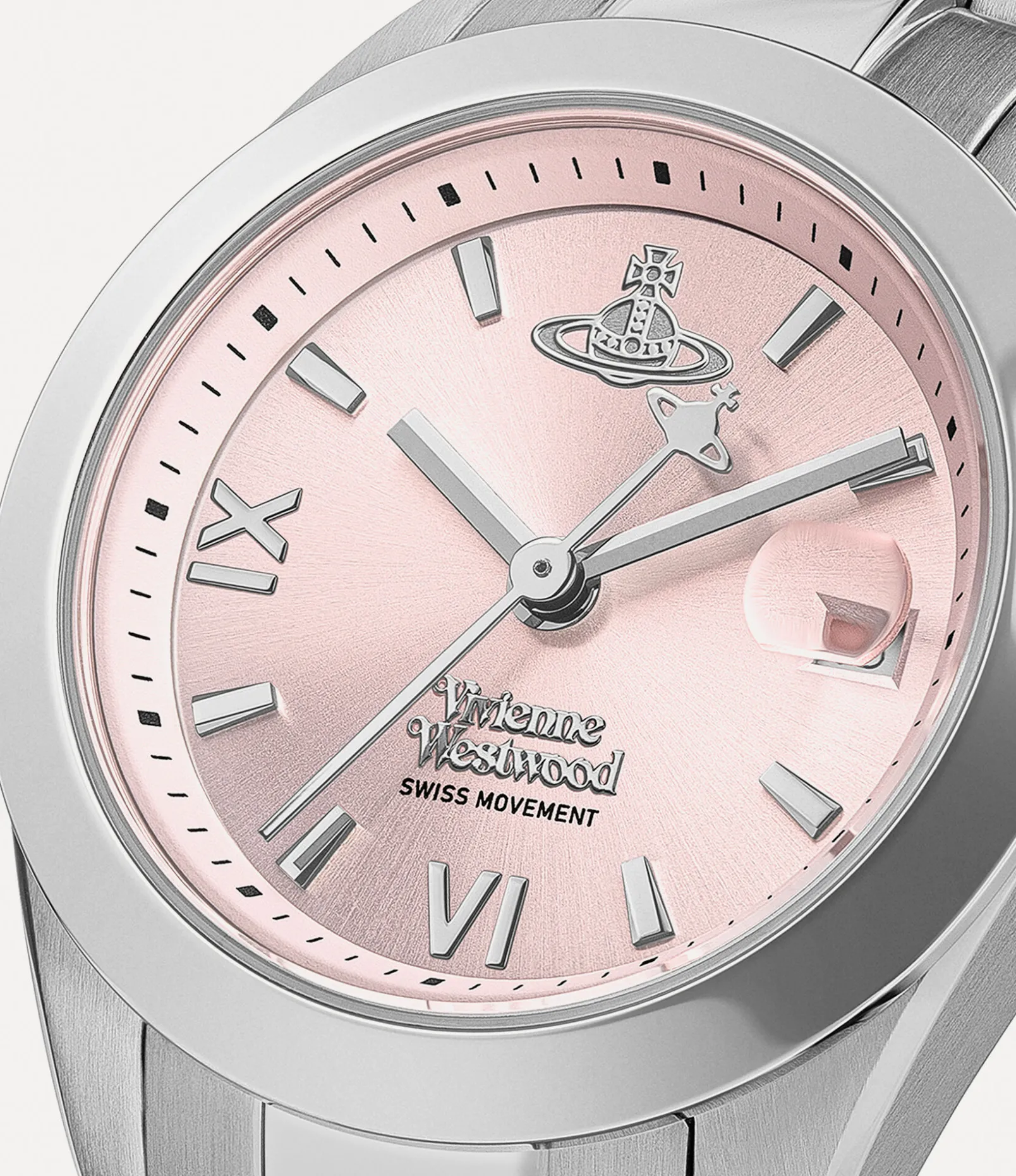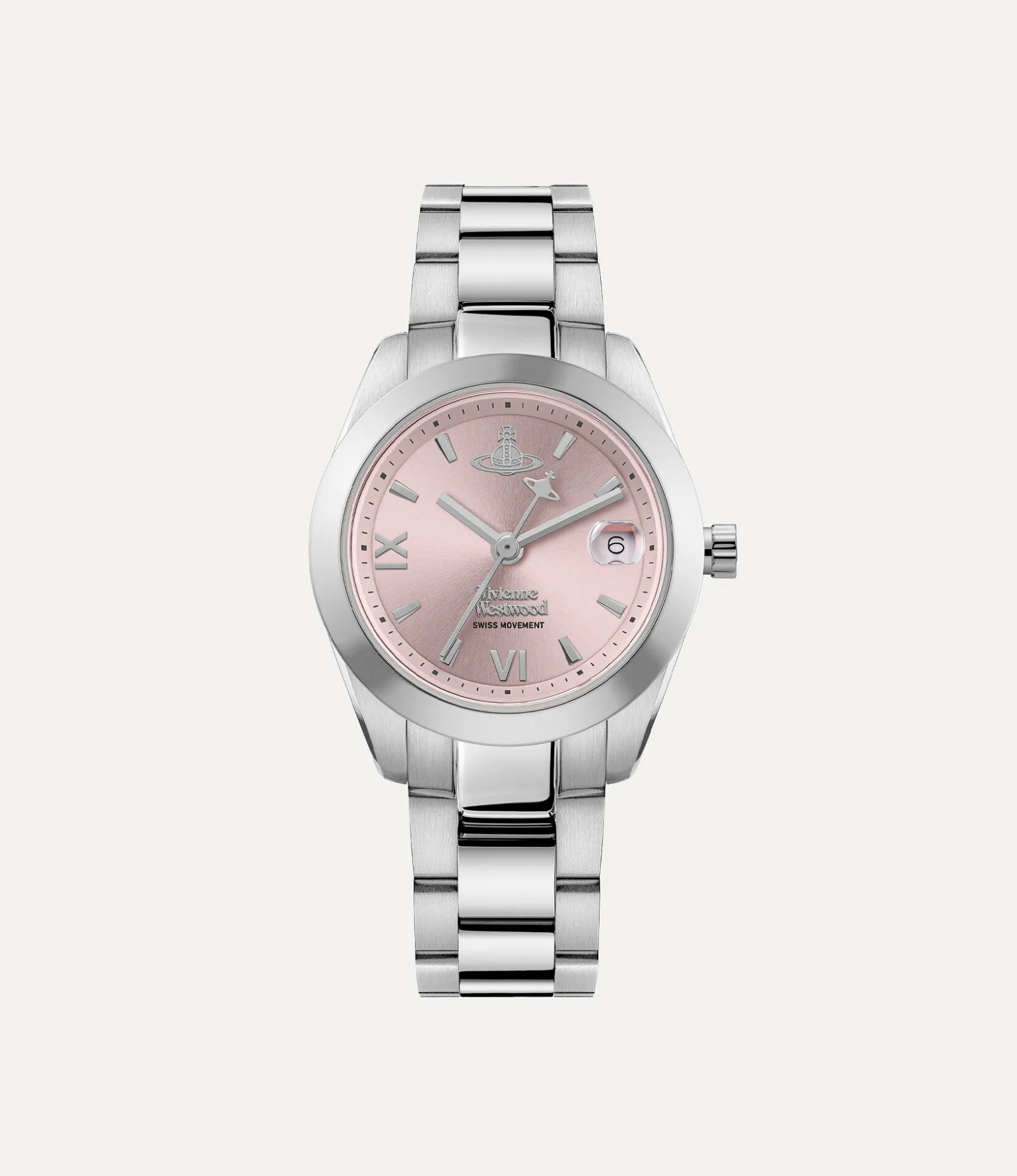 Part of our popular Fenchurch collection, this season’s Fenchurch watch features a distinctive three-link bracelet, finished in polished silver tones. Named after London’s historic financial district that resonated with Vivienne, this piece is elegantly detailed with a date feature at the 3 o’clock position.