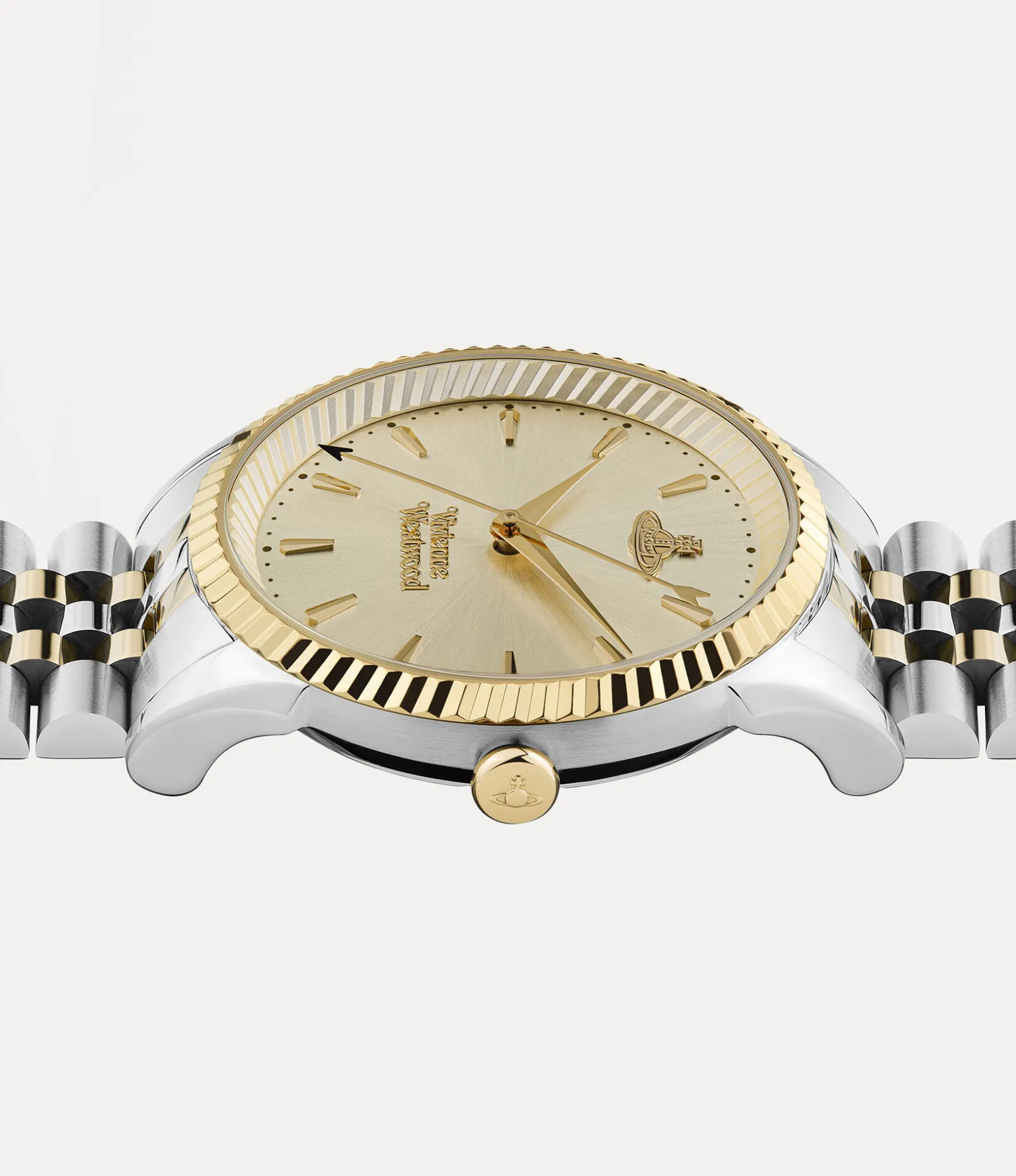 Inspired by the iconic Wallace design, our Seymour watch showcases a two-toned Jubilee bracelet paired with a refined, brushed dial. Named after Seymour Street in Marylebone, London, this piece is distinguished by a coin-edged bezel, finished with polished, gold-tone plating.